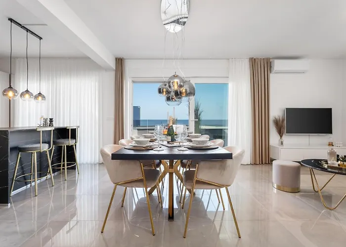Quest'appartamento offre agli ospiti un balcone, un soggiorno e una cucina, oltre a comfort moderni come un impianto di climatizzazione. Questa struttura comprende 2 camere da letto. Un vantaggio per gli ospiti del Luxury Sea View Apartment Levin è la presenza di asciugacapelli, accappatoi e teli da bagno nel bagno. Inoltre, sono presenti un bagno con WC separato e una doccia.